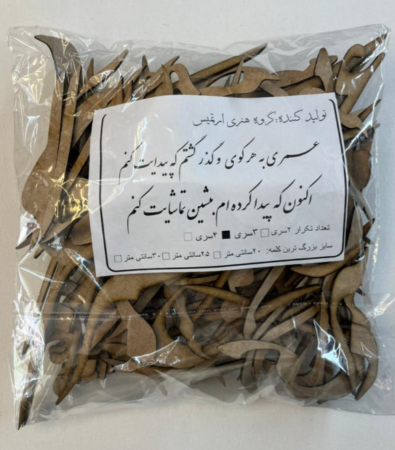 جنس حروف : چوبی تعداد تکرار حروف در بسته : 3 سری سایز بزرگ ترین کلمه : در دوسایز 30و 16 سانتی متر موارد استفاده: مناسب برای انواع تابلو کالیگرافی و پتینه