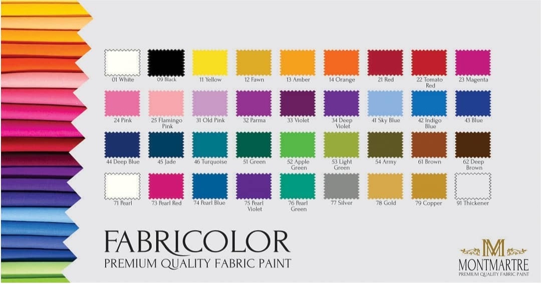 رنگ پارچه مونت مارت با کیفیت بسیار بالا . رنگ پارچه پایه آب مونت مارت، قابل استفاده بر روی پارچه های تیره و روشن و با کیفیت بالا. قابل استفاده بر روی پارچه های (پنبه، نخ، کتان و پلی استر). در 40 درجه سانتی گراد قابل شستشو می باشد و بعد از اتو کشیدن رنگ آن ثابت می ماند (5 دقیقه در هر طرف). برای اتو زدن پارچه های ظریف یک لایه (پارچه) بین پارچه و اتو قرار دهید. بعد از 24 ساعت خشک می شود. قبل از استفاده تکان دهید