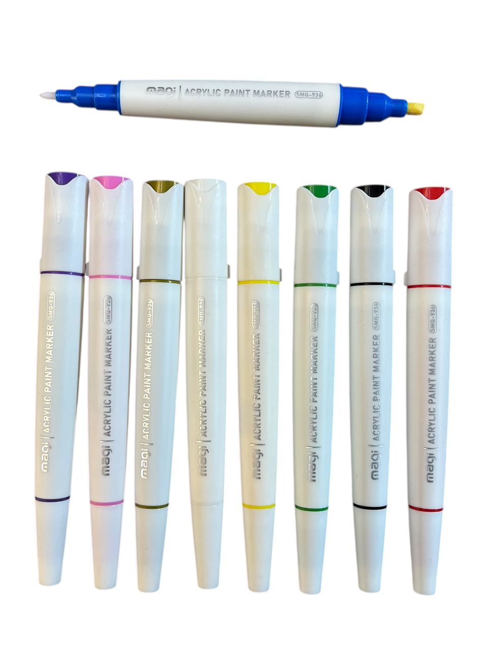 ست 9 رنگ ماژیک اکرولیک دوسر تخت و گرد این ماژیک به دلیل داشتن ساختاری بر پایه آب و دارا بودن رنگ اکرلیک در مخزن خود هیچ گونه بو بدی نداشته و سمی نمی باشد ماژیک اکرلیک نقاشی در حقیقت نوعی از ماژیک است که دارای رنگ های اکریلیک بوده و. این ماژیک دوسر گرد و سر تخت و قطر 50 میلی متر مناسب برای نقاشی خط و.... از این ماژیک برای نقاشی روی سطوح مختلف نظیر بوم، چوب، فلز و غیره مناسب است.